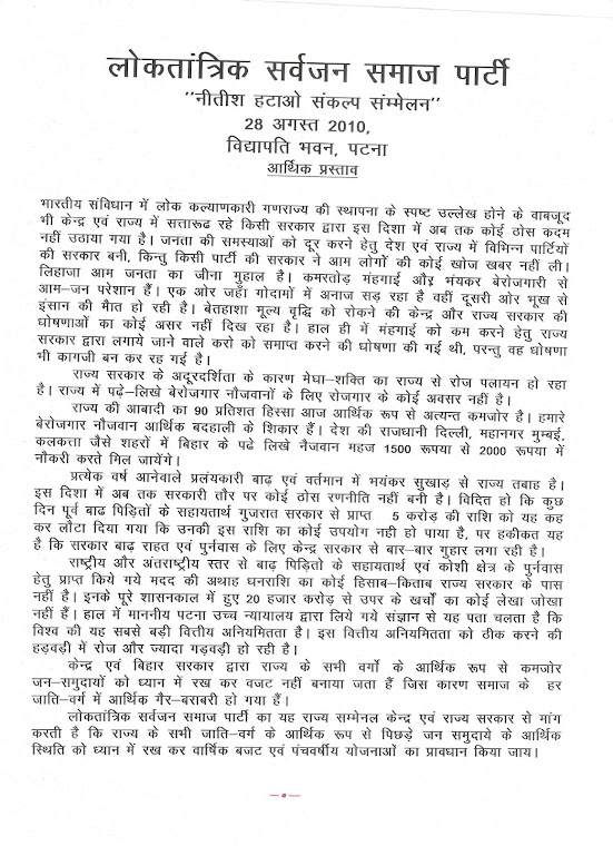 संवाददाता सम्मेलन में उपस्थित सर्वजन समाज पार्टी के राष्ट्रिय प्रधान महासचिव व प्रसिद्व अर्थसास्त्री प्रो.( डॉ.) योगेन्द्र सिन्हा ने कहा कि बिहार में भयंकर वितीय कुप्रबंध कि वजह से अमीरी और गरीबी में जबर्दस्त खाई बड़ी है. रिश्वत खोरी एबम निरंकुश अफसरशाही कि वजह से ११४१२ करोड़ रूपये कि वितीय अनियमितता हुई है! अब सीo बीo आई ओ और उच्च न्यायलय के भय से हड़बड़ी में काफी गड़बड़ी हुई है जिसे जनता के सामने पार्टी उजागर करेगी.